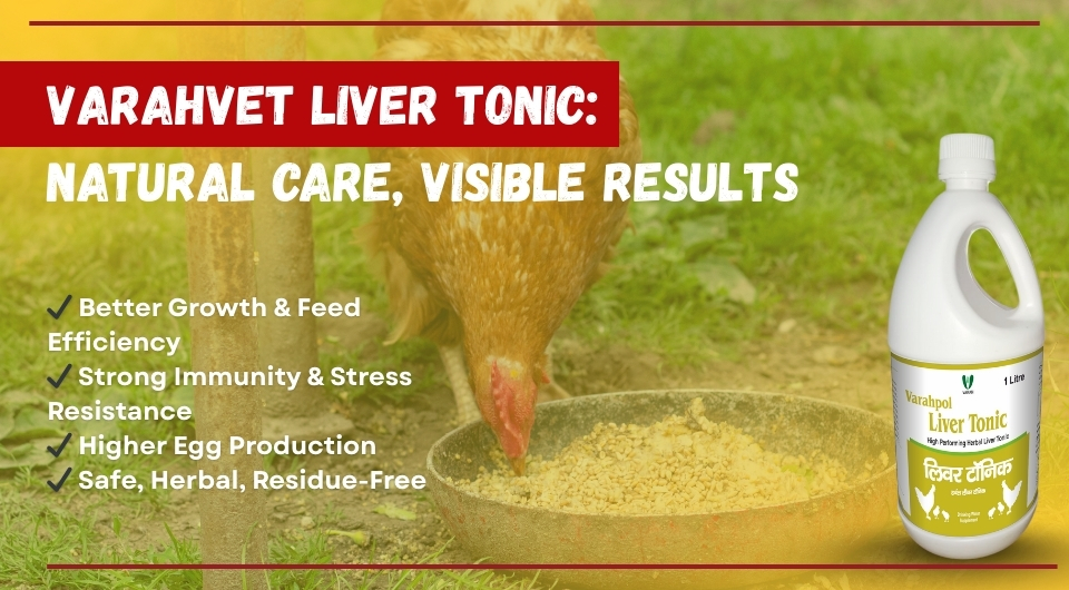 Varahvet’s Liver Tonic is a purely herbal, scientifically developed product, manufactured in UP’s first PNG-powered facility, ensuring quality and sustainable production. It’s ideal for modern, responsible poultry farming.